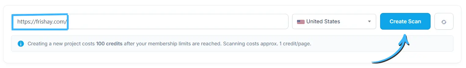 Go to Serpspur and enter your website URL in the search bar. Then click on the “Create Scan” button to start the analysis.