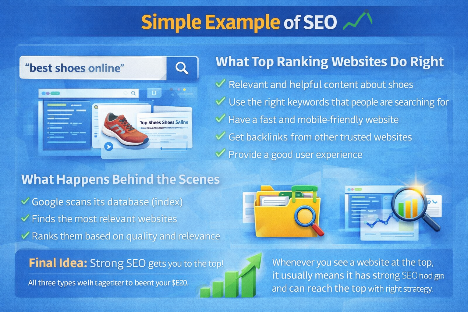 If someone searches for “best shoes online,” search engines will show websites that: